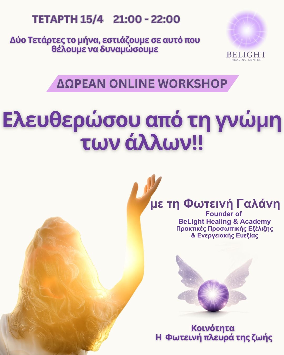 Θέλοντας να απαντήσουμε σε αυτές τις ερωτήσεις, αλλά και προκειμένου να δυναμώσουμε μαζί τη φωτεινή πλευρά της ζωής, αποφασίσαμε να καθιερώσουμε κάθε μήνα, δύο συναντήσεις on line & δωρεάν, οι οποίες θα έχουν ως βασικό σκοπό τους την ψυχική ευεξία.